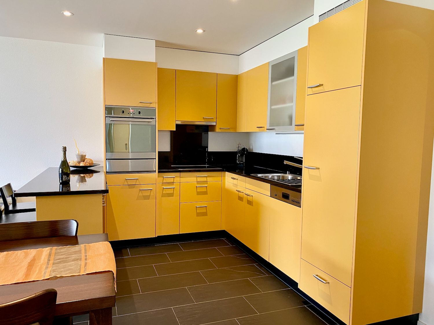 Die Wohnung verfügt über diverse Einbauten wie Badewanne mit Massagefunktion etc. Die Küche ist offen gestaltet und voll ausgestattet. Im Garten steht ein Schwimmbad zur Verfügung. Ferner gehören zur Wohnung ein separater Raum mit Waschmaschine/Tumbler sowie ein grosser Keller und ein gedeckter Autoabstellplatz.