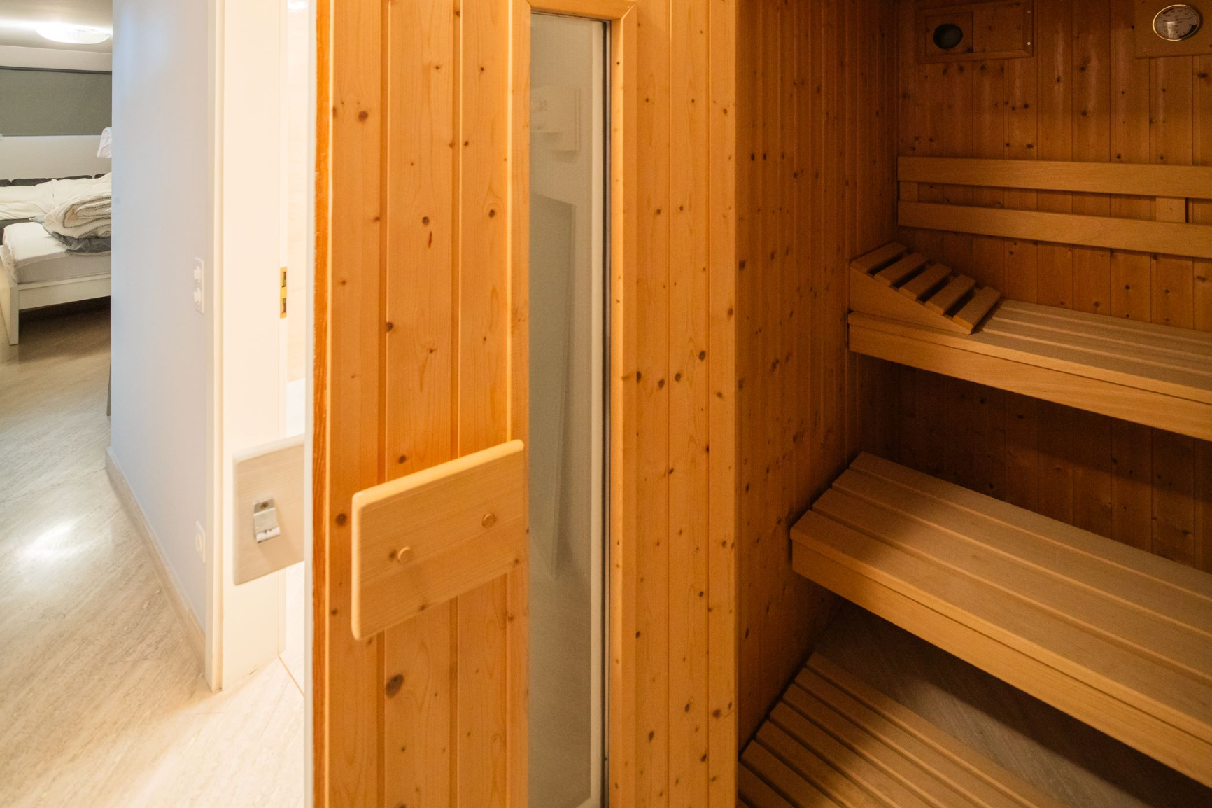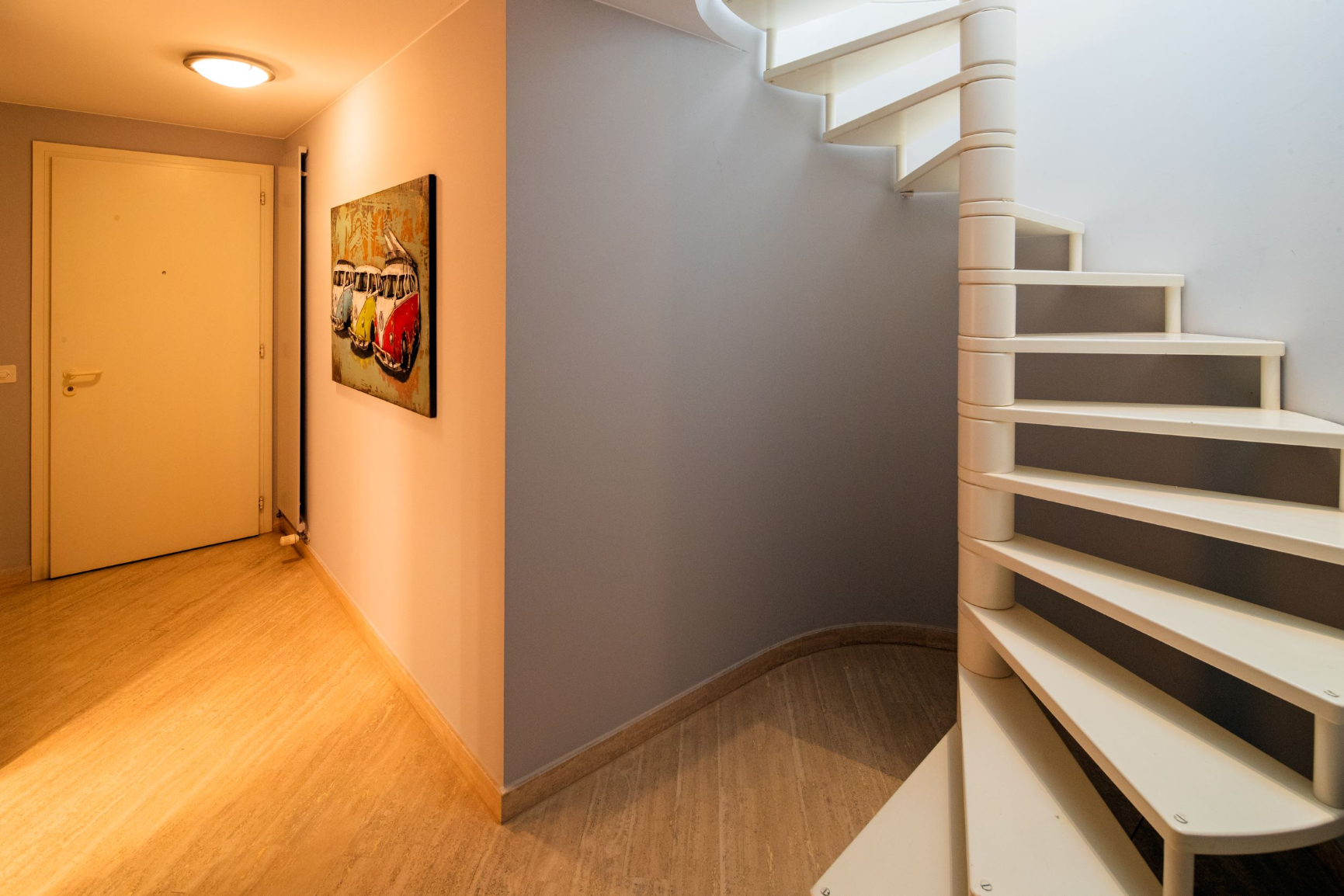 Die Nettowohnfläche liegt bei ca. 100 m2. Zur Wohnung gehört ein separates Studio (ca. 40 m2) mit Dusche/WC und eingebauter Sauna. Dieses befindet sich unterhalb und ist mit der Hauptwohnung verbunden, verfügt aber über einen eigenen Eingang. Hier bieten sich diverse Nutzungsmöglichkeiten wie Büro oder Gästetrakt.