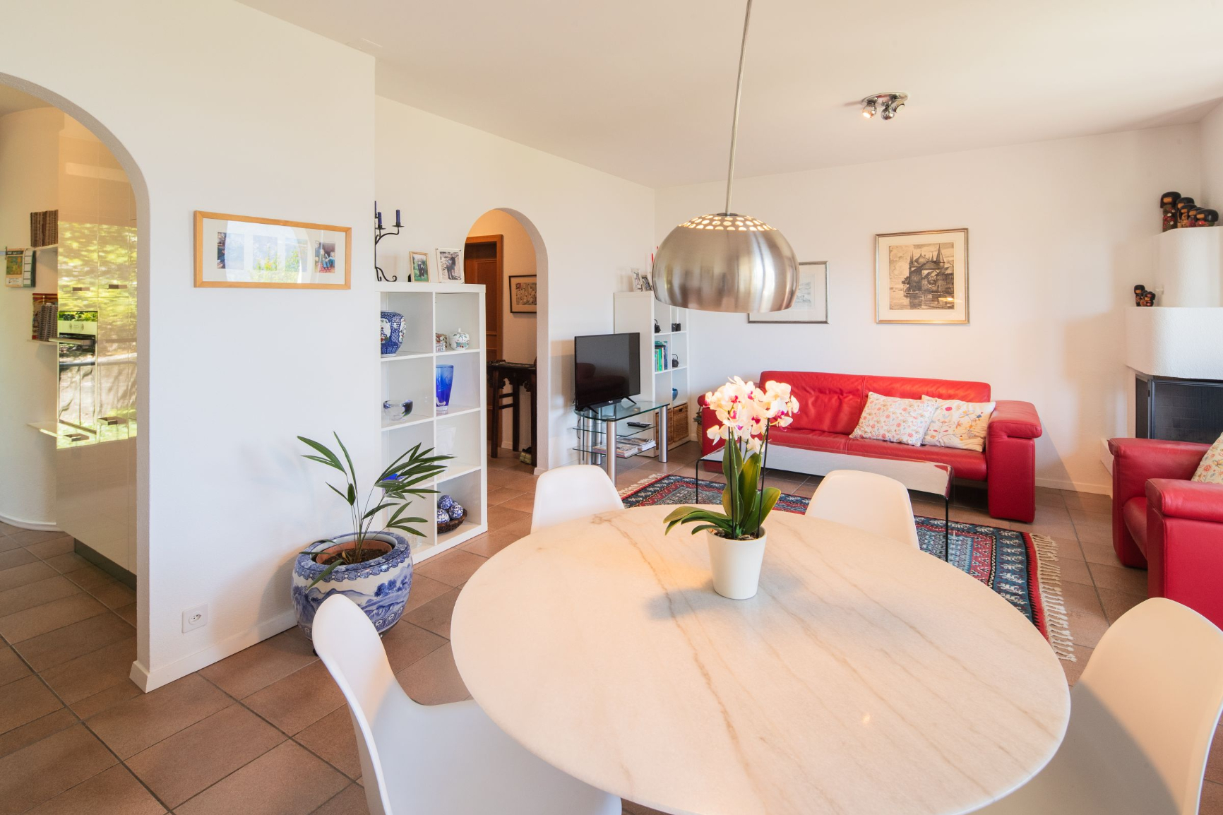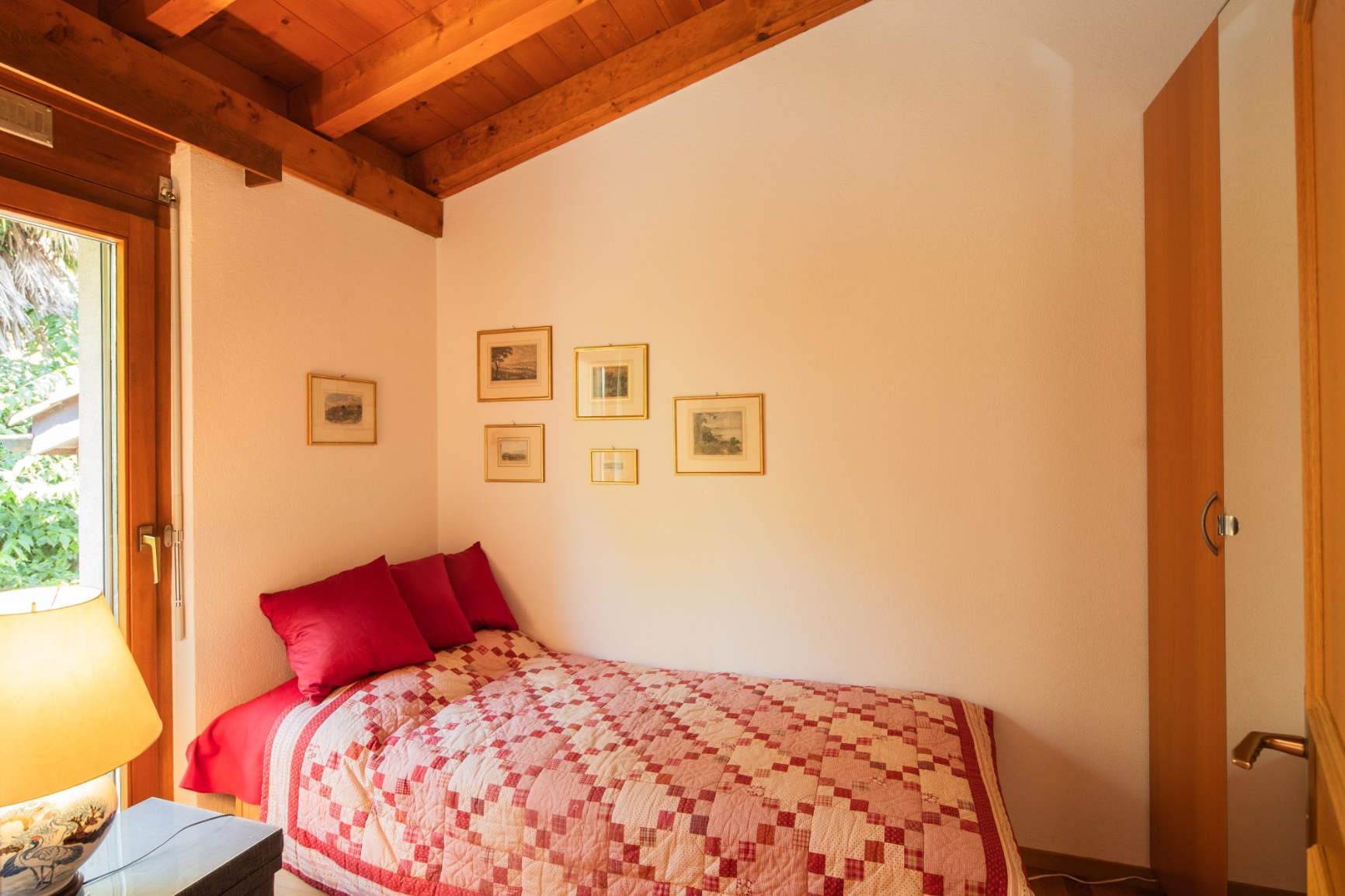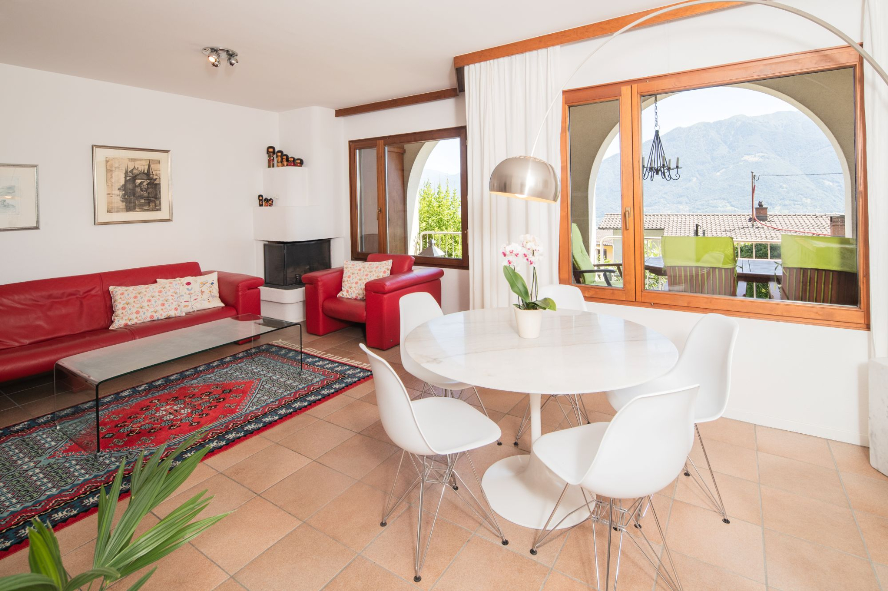 Völlig neuwertiges 5 1/2-Zimmer-Reihenhaus mit kleiner Gartenanlage und schöner Sicht auf den See und das Locarnese. Im Eingangsgeschoss befinden sich das Wohn-Esszimmer mit Cheminée, die neue und voll-ausgestattete Köche sowie ein Gäste/WC mit Dusche. Im Obergeschoss befinden sich 3 Schlafzimmer (2 see-orientiert) sowie ein grosses Bad. Im Parterre-Geschoss befindet sich nebst Hobbyraum (könnte als Studio ausgebaut werden) noch Keller, Waschküche sowie der Heizungsraum. Die pflegeleichte Gartenanlage liegt vor dem Haus. Ein beheizbares Schwimmbad mit grosszügigem Liegebereich steht zur Mitbenützung zur Verfügung.