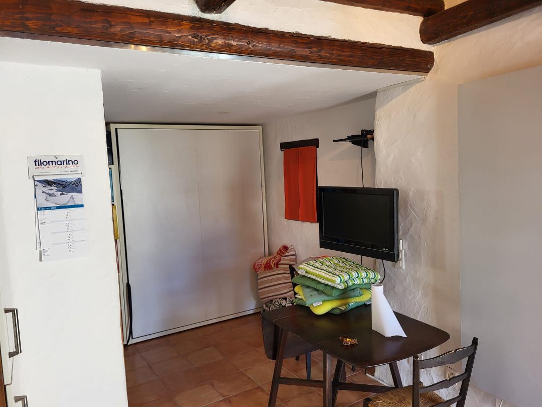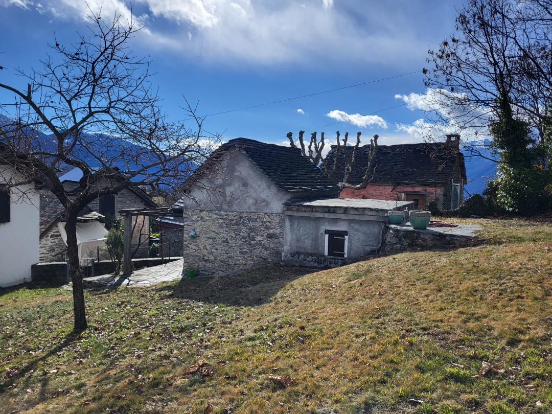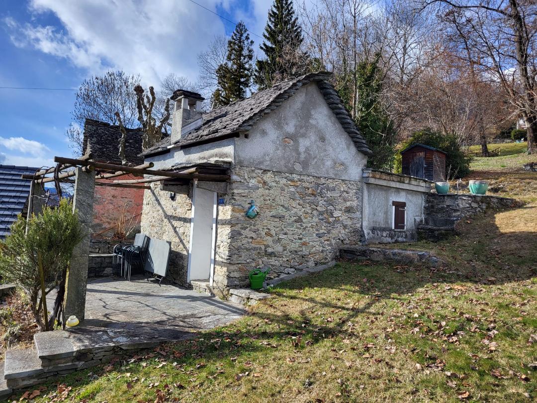 Das Rustico hat ein Cheminée, eine offene Küche und eine Schlafgelegenheit sowie ein separates Bad mit Dusche und WC. Sehr schöner Aussenbereich mit Terrasse vor dem Haus. Das Rustico verfügt über ein Original-Natursteindach (piode).